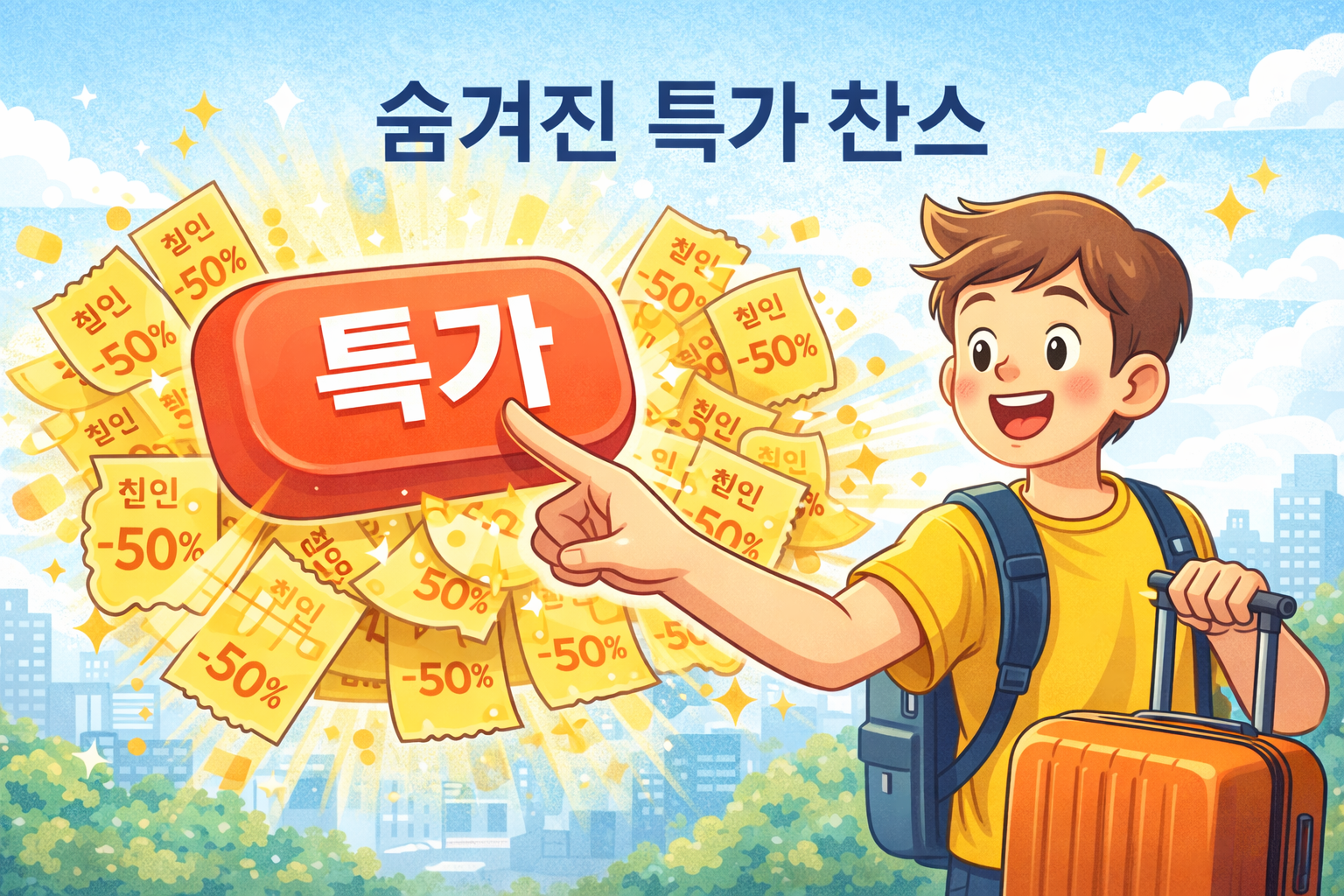 야놀자와 여기어때는 매일 오전 10시에 한정 특가 상품을 공개합니다. 주요 호텔 객실이 정상가 대비 20~30% 할인된 가격에 나오며, 선착순 마감되므로 알람 설정이 필수입니다.