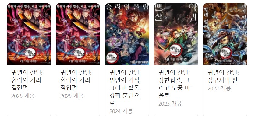 - 귀멸의 칼날 시리즈별 핵심 정보