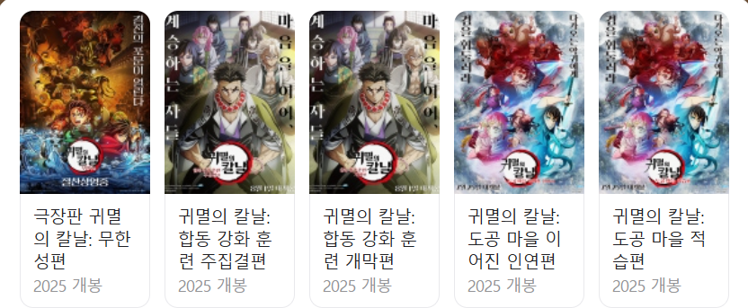 - 극장판: 무한성편 (3부작): 귀멸의 칼날 최종 결전을 담은 시리즈 전체의 클라이맥스