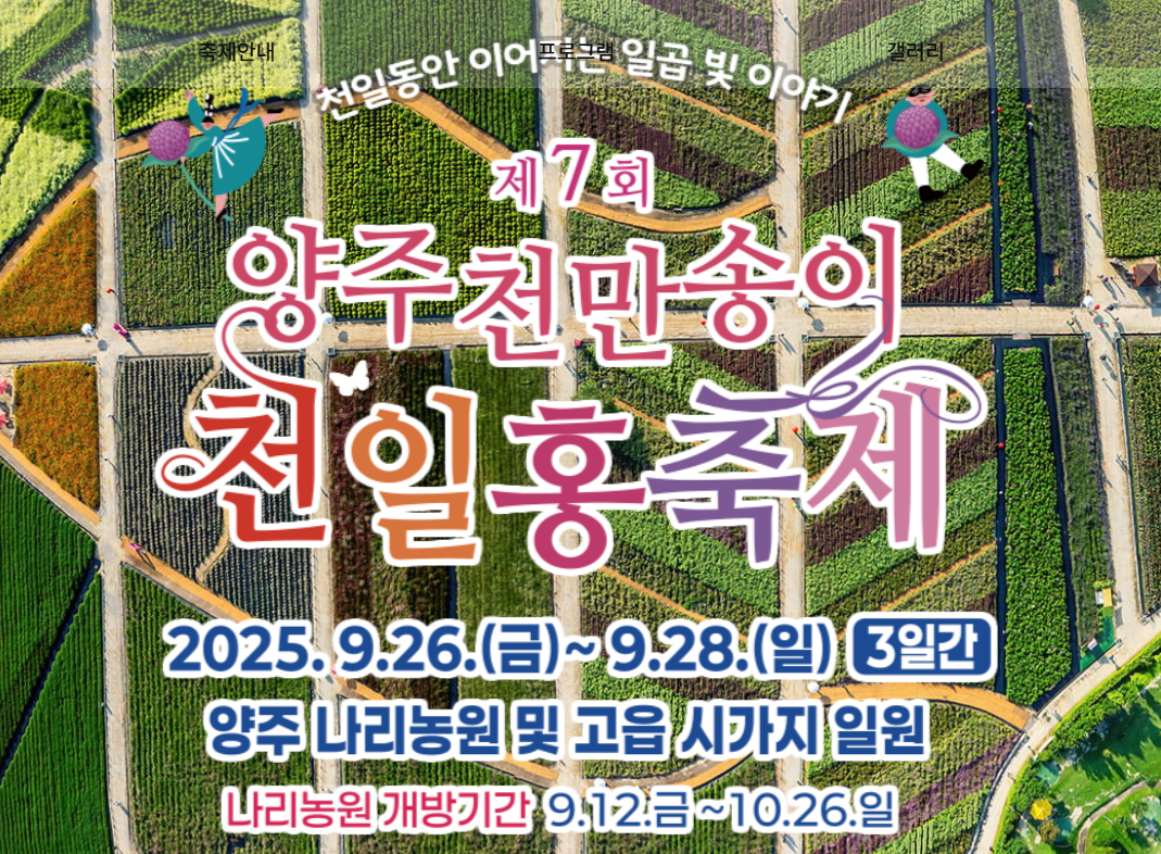2025년 가을, 천만 송이 천일홍 축제가 경기도 양주시에 있는 나리공원에서 열립니다! 축제에 가기 전에 기본 정보는 꼭 알아둬야겠죠?